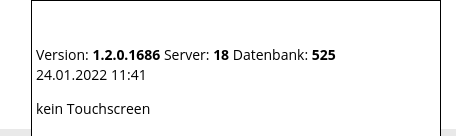 Die aktuelle Version der Zimmersoftware können Sie erfahren, indem Sie den Mauszeiger über das „Info“-Symbol in der Fußzeile bewegen: